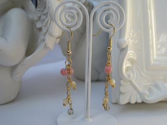 インカローズ&マザーオブパール&スモーキークォーツ ピアス