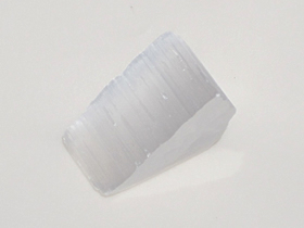モース硬度2で軟らかい為、キズが付きやすく、水や湿気、油脂に弱く、水に溶けてしまいます。